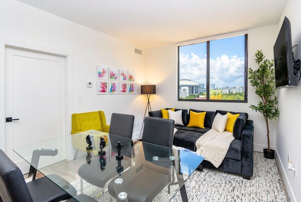 • 🟆 4K Smart TVs with Netflix & Roku in every room • 🟆 Comfortable living area with modern furnishings • 🟆 Fast and reliable internet for work or streaming