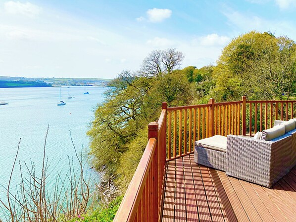 Hand picked for its panoramic estuary views, and your very own private hot tub - pure bliss.. 3 steps to entrance.