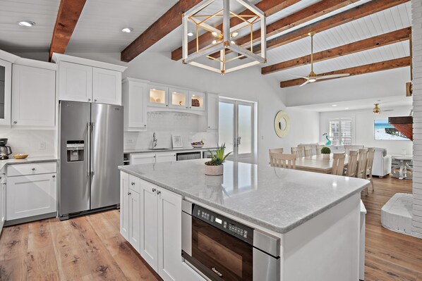 ✹ GOURMET, FULLY-STOCKED KITCHEN: Cook in style with upscale appliances, custom cabinetry, and multiple refrigerators in the Fully Remodeled Kitchen