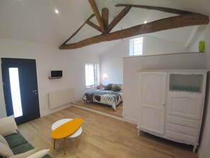 Renovated farmhouse guestroom with private terrace and lake view provides everything that you need. Guests can connect to in-room WiFi.