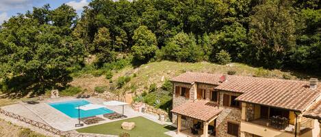 Die Ferienwohnung liegt mitten in der Toskana und verfügt über eine überdachte Terasse und einen kleinen Sitzbereich vor der Haustür, man findet also fast immer einen Platz an Sonne oder im Schatten.