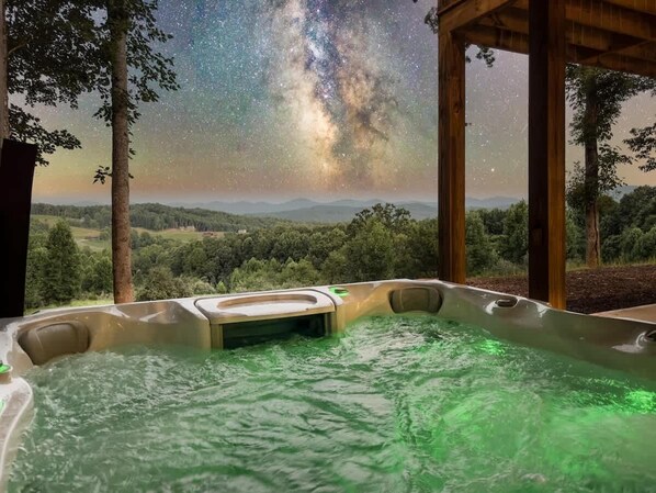 Amazing long-range views, lush landscaping, refined quality and luxury at every turn! Berry Refined provides the quintessential escape to absorb the peace and tranquility of the North Georgia Mountains. Soak away your stress in the hot tub, cozy up by the outdoor fireplace, prepare that romantic meal in the gourmet kitchen and retire to a wonderful night's sleep in the plush beds. The charm and beauty of this property will keep you coming back for more!