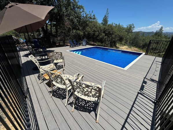 Outdoor pool - Ultimate Group Getaway: Swimming Pool, Game Room, Bocce & Mountain Views! (Murphys)