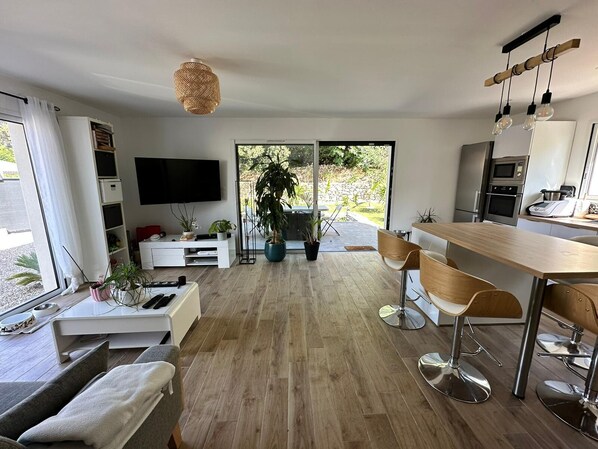 De belles photos sur l'annonce, cela laisse rêveur mais à l'arrivée la déception ! Dommage car c'est une belle maison en générale avec piscine. Laure est très sympathique mais a un irrespect total de la propreté. Obligé de faire le ménage avant de poser les valises. Les draps, les serviettes plein de poils et des oeufs d'araignées. Pas top pour adultes et encore moins pour les enfants. Les placards et objets de cuisine tous sale voir dégueulasse. Il n'y a qu'une climatisation en bas et ne monte pas du tout à l'étage. Une chaleur à crever, sans compter le rideau électrique en panne côté soleil. C'est un village calme avec un petit restaurant très sympathique avec de belles personnes. Vu le prix de la location un gros minimum est demandé...et encore je suis tombée soit disant dans une période remisée.