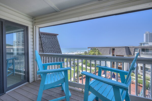 Experience classic coastal luxury and comfort at Ocean Forest Villas 311B in Myrtle Beach. Wake up to a sunrise from the ocean-view master suite balcony, prepare meals in the full-size kitchen, and unwind on your private oceanfront balcony with stunning views of the endless ocean. With an outdoor hot tub, beachfront gazebo, two outdoor pools, an outdoor grill with a walkway to the beach nearby.