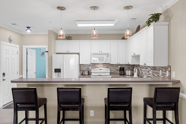 The fully equipped kitchen is prime for preparing family meals or a picnic to enjoy at the beach, which is a 5 minute drive away. On the days you decide to dine in, gather around the dining table with loved ones and take in that view. If cooking isn't on your vacation list of things to do, no worries, as this area of Myrtle Beach has some of the top restaurants very close by. Myrtle Beach has over 1,900 restaurants to choose from. From some of the freshest seafood you will ever taste, to restaurants of all flavors and price points. Believe me-your taste buds will never be bored!
