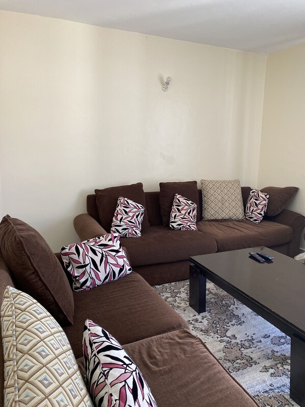 Nairobi's vibrant atmosphere meets serenity at Tranquil Haven in the Bustling Capital. Unwind in this spacious 1-bedroom apartment, complete with a living room featuring a flat-screen TV, an equipped kitchen, and 24-hour front desk assistance.