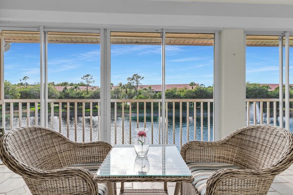 This spacious second-floor, 2-bedroom, 2-bath condo welcomes you with an open, airy layout designed for comfort and ease. The living area flows seamlessly into a large private balcony, where you can unwind with serene water views and gentle breezes. Perfect for morning coffee, evening cocktails, or simply taking in the peaceful surroundings, this outdoor space elevates the true Florida lifestyle.