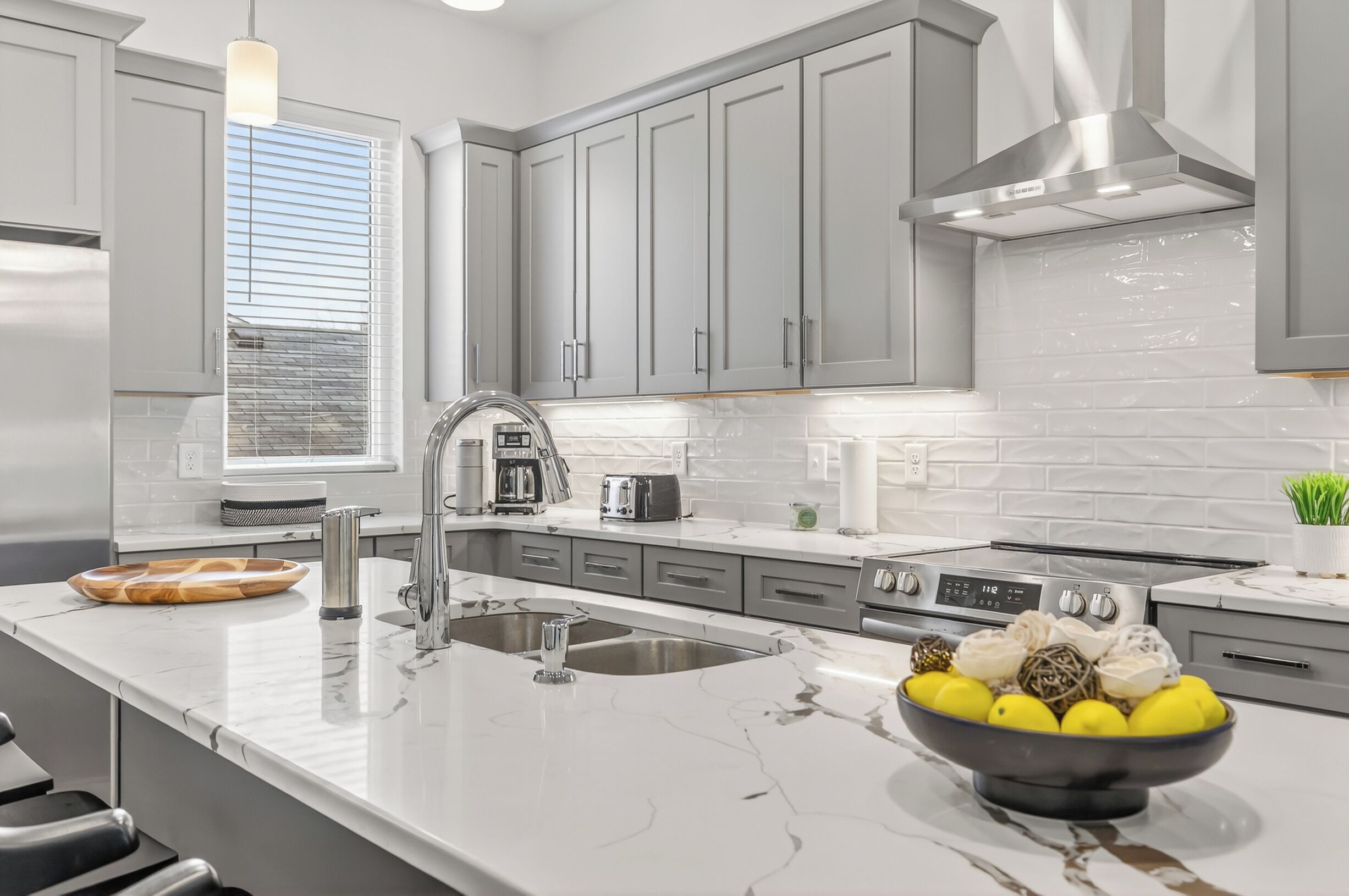 Featuring 3 bedrooms, 2 full bathrooms, and an amazingly spacious chef's kitchen, this wonderful home easily sleeps 6 people and even includes a private back patio with a fully fenced-in yard and gas grill. A few more features available for use during your time here are a full dining table, gourmet 6-burner gas stove, coffee maker or french press, plush top-quality mattresses and bedding, high-speed internet & wifi, and flat screen TVs in each bedroom (w/ access to Smart TV apps but no cable).