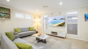 Located in Nelson Bay, this holiday home is near the beach. Tomaree National Park and Fly Point Marine Reserve reflect the area's natural beauty and area attractions include Toboggan Hill Park and Salamander Super Strike. Discover the area's water adventures with scuba diving and snorkelling nearby, or enjoy the great outdoors with mountain climbing and hiking.