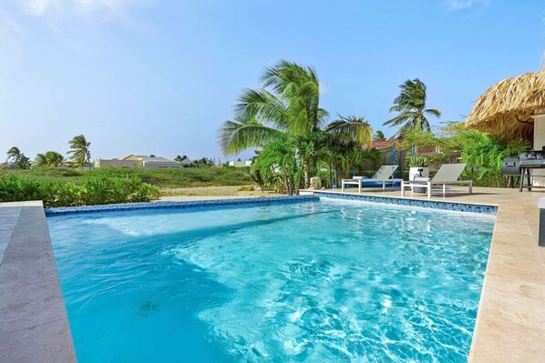 Beautiful Villa — Great Location!The pictures don’t do this rental justice. There is a huge common space and the doors open to make a fantastic indoor/outdoor common area. Also, each couple had their own quiet en suite oasis with unique decor, large bed with quality linens, and bathroom with all the toiletries and towel service you’d expect at a high-end hotel. The pool was private and there was plenty of space for lounging in both sun and shade. We also made short drives to enjoy Arashi Beach (less than 10 min.) and Malmok Beach (maybe 5 min.) We had some fantastic meals at restaurants and also cooked in the large and well-appointed kitchen/bbq. The golf course is also a very short drive away. Palm Beach is just a .3 mile walk across the park, and we had a great time at the Ritz Carlton Casino. Grocery stores and mini marts are both available within a short drive when we needed to resupply. Bocobay was great - happy to provide recommendations and help out with questions. All around a great find - will book again!