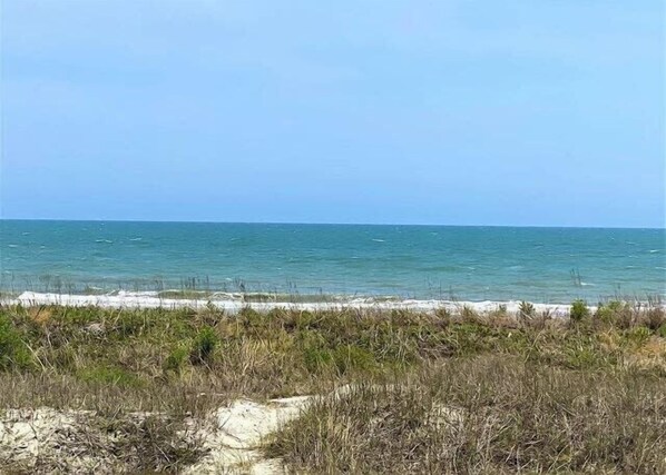 We grew up spending summers at an old beach house in Ocean Drive and this house brought back a lot of memories. We stayed in the upper story so had a beautiful view of the lovely dunes from the peaceful front porch. The knotty pine interior is beautiful!