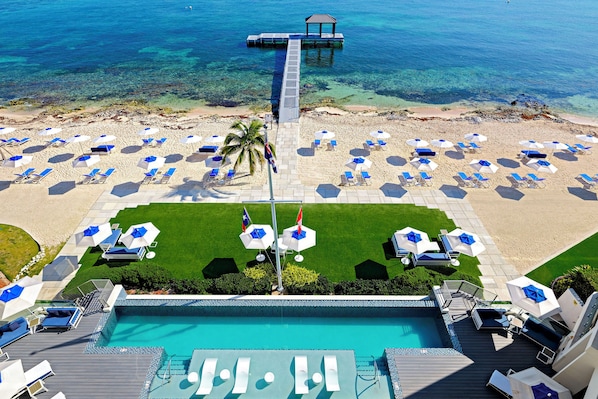 500 feet of beachfront with daily beach umbrella, chair, and towel service.