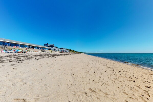 Escape to the Cape at this cozy condo, perfectly suited for couples. With a kitchenette and shared grills, you can unwind in style. Just steps away from the water's edge and 500 ft of private beach, enjoy breathtaking views of miles of walkable shoreline toward Wellfleet or Provincetown.