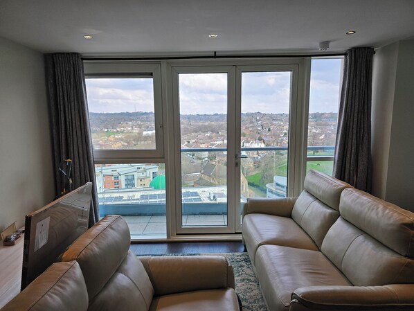 Included in the apartment are leather reclining sofas, a 55" Smart TV, and PS5 Disc edition with 2 controllers.