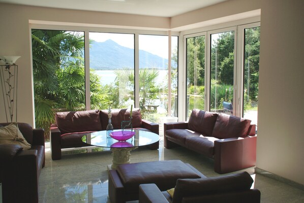 The villa is perfect for families with plenty of activities on site and in the surrounding area. You can enjoy walks on the lake, feed the swans or just enjoy the amazing view over the water and mountains. You are really away from it all. We also went skiing in Switzerland whilst staying there.