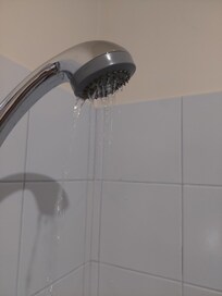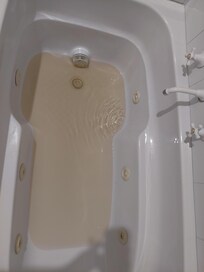 The tap water was consistently discolored with a bright orange/rusty tint. It was not suitable for basic hygiene, such as brushing teeth. The bathtub also showed heavy rust sediment when filled.