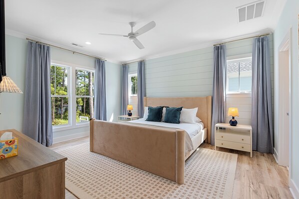 This brand-new, modern beach home blends comfort, fun, and convenience. Perfect for families and groups. With room for up to 12 guests, a private pool, 6-seater golf cart, and a new hot tub coming March 1st, it’s the ultimate coastal retreat.