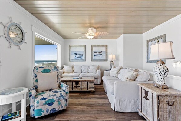 Extra Large Decks: Perfect for outdoor gatherings, relaxing in the sun or enjoying the panoramic ocean views. Watch the incredible ocean sunrises and sunsets on one the new elevated and very comfortable rocking chairs and tables!