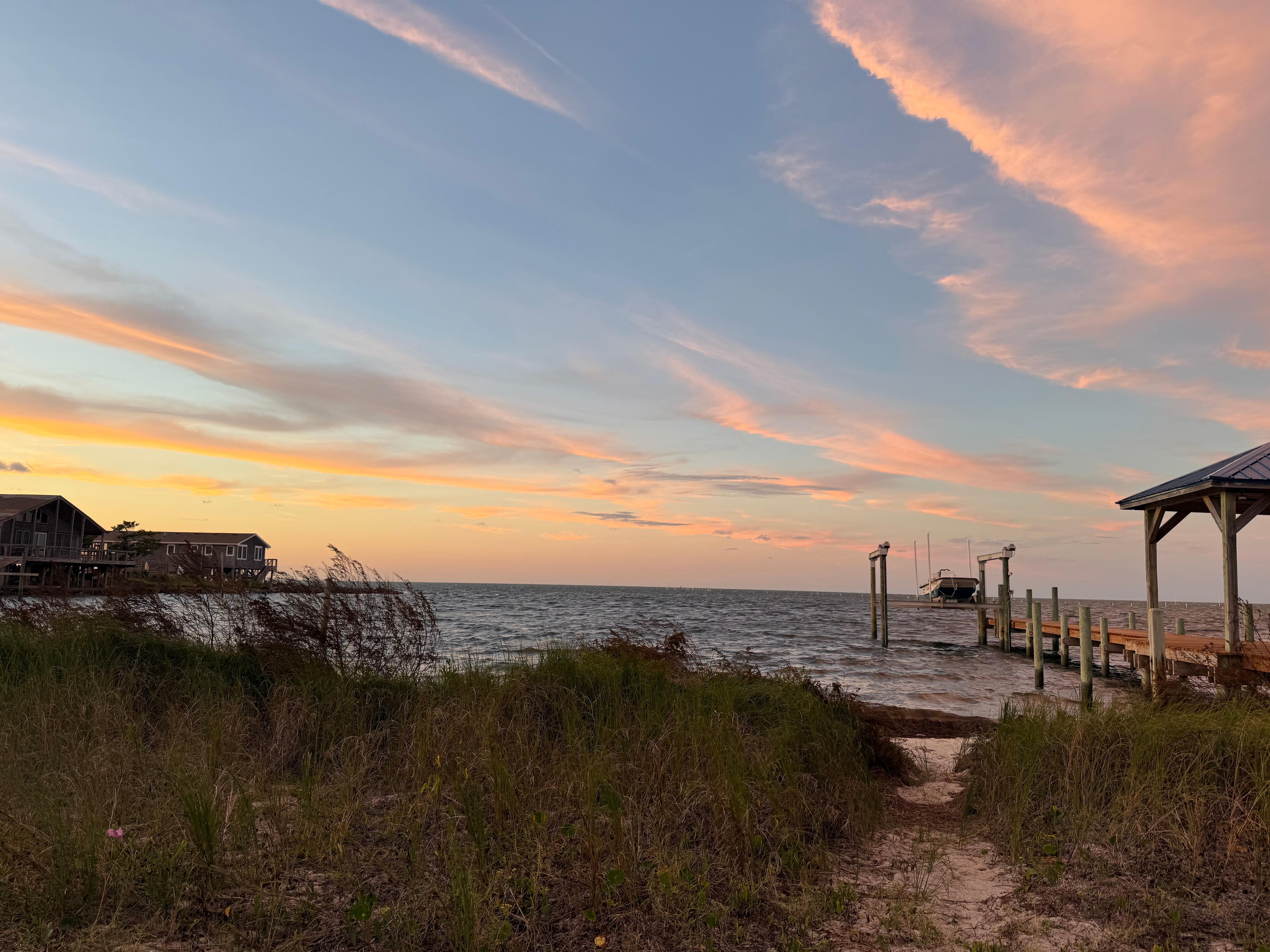 Exterior offers a large sound view screened porch with both dining table and seating area, hammock, sandy beach, hot/cold outdoor shower, charcoal grill and fish cleaning bench. 2 person kayak. Life jackets are not provided, if you wish to rent them, please contact Ride The Wind Surf Shop. They will be happy to assist.