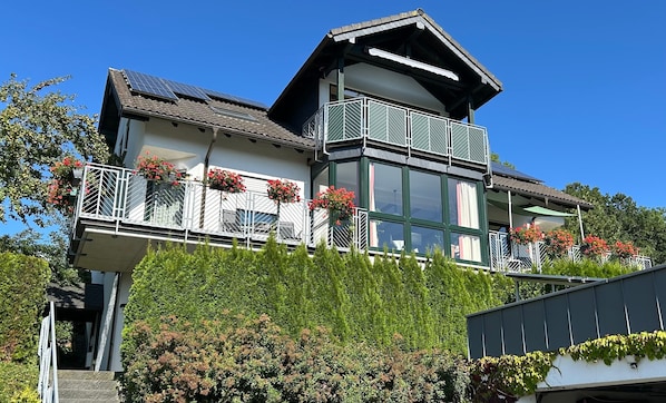 The apartment is lovingly and functionally furnished so you can feel at home from the moment you arrive. Enjoy stunning panoramic views of the Sauerland mountains from the south-facing balcony and the covered west-facing loggia.