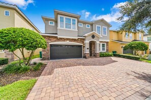 Located at Reunion Encore Club, this luxury pool home sleeps 22 people in comfort. Just 10 minutes from Disney and with a free shuttle to Disney World and Universal Studio, you'll be close to the action. Enjoy a full-service dining room and bar, fitness center, playground, water park with four tube slides at The Rain Fortress within the resort's massive club house.