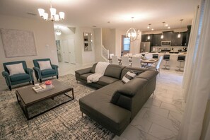 In the heart of Champions Gate Resort, this 6Bd villa is your private getaway. Relax in the living room with freshly popped popcorn and challenge friends to a game of foosball or gaming on PlayStation 4. Enjoy outdoor tranquility by taking a dip in the pool and savoring lanai serenity.