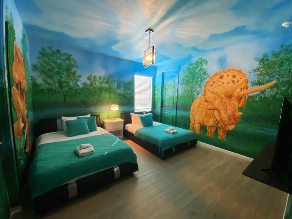 🛏️ 2 Themed Full Bedrooms with 2 Full Beds in each room, perfect for kids!