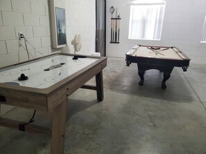 Escape to your own private retreat at Westside, a serene five-bedroom vacation home. Nestled in a calm area, this haven offers the perfect blend of relaxation and entertainment with its comfortable living spaces, game room with pool table and air hockey, fully equipped kitchen for delicious meals or ordering from nearby eateries. Enjoy high-speed internet throughout the house.