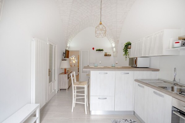 Photo gallery for Lovely apartment equipped with every comfort for 2 people and located in a typical stone building, of which it retains striking features in the internal architecture, such as the characteristic stone vault in the living area. The flat is located in a qui