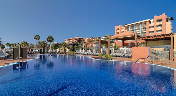 H10 Tindaya offers an eco-certified beachfront experience on pristine white sands. Guests enjoy two restaurants serving local and international cuisine for all meals. The property features a swim-up bar with free WiFi and a spa providing aromatherapy treatments.