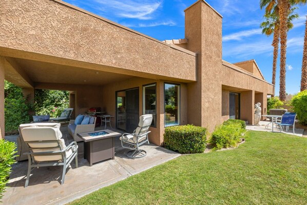 1.5 miles to El Paseo Shops & Dining, a quarter mile walk to Ironwood Park, Hike to The Cross (1.7 miles), 50 feet from the Haystack green belt, steps to The Living Desert, 6 miles to the Indian Wells Tennis Gardens, 12 miles to Coachella Valley Fairgrounds (Music Festivals) 20 minutes to Palm Springs Airport, 2.5 hours to San Diego, L.A., and Disneyland.
