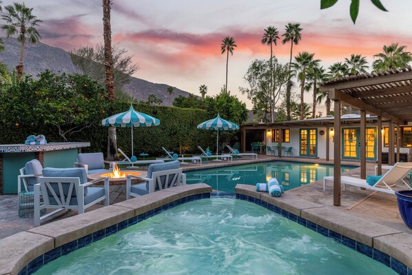 Designed by the award-winning H3K design team, the home offers seamless indoor-outdoor living, multiple gathering spaces, and a private resort-style backyard framed by mountain views. With two kitchens, two living areas, and generous outdoor amenities, The Clever Cactus delivers a relaxed yet elevated Palm Springs experience just minutes from Downtown.