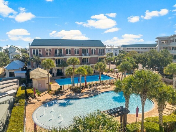 Welcome to The Holland House, nestled in the heart of Florida's scenic 30A corridor. With a private balcony and views of the Village area, you'll feel like you're living in paradise! This 3-bedroom condo features top-notch furnishings, a spacious kitchen with granite countertops and stainless appliances, plus access to community pools and a beach tram.