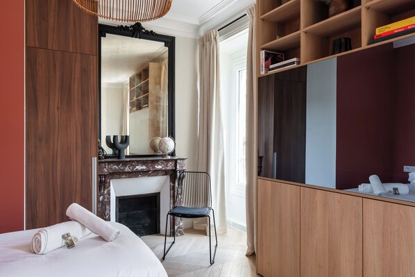 Discover this quiet, bright apartment, with a pleasant garden view from the 5th floor (with elevator), in the heart of downtown Paris.