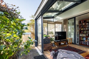 Montparnasse's eclectic streets set the tone for this capacious four-bedroom apartment, with its light-filled interiors and rooftop terrace offering majestic vistas across Paris. From the delightfully open-plan living area to the peaceful garden, tropical plants bring an enlightened feel, while a carefully curated bookshelf and piano add cultural flair.