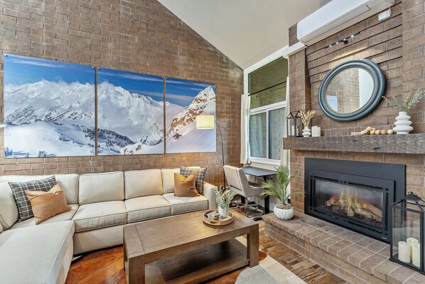 Walk to lifts & Main St. condo with hot tub, heated garage, & mountain view