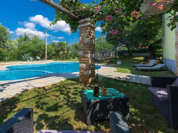 Nestled in the picturesque hamlet of Veli Ježenj, Villa Lea offers a serene escape with its 3,000 m2 grounds featuring lush lawns and a delightful swimming pool. Enjoy the outdoors with an outdoor shower, terrace, and barbecue facilities while staying connected with internet Wi-Fi available within the property.