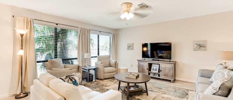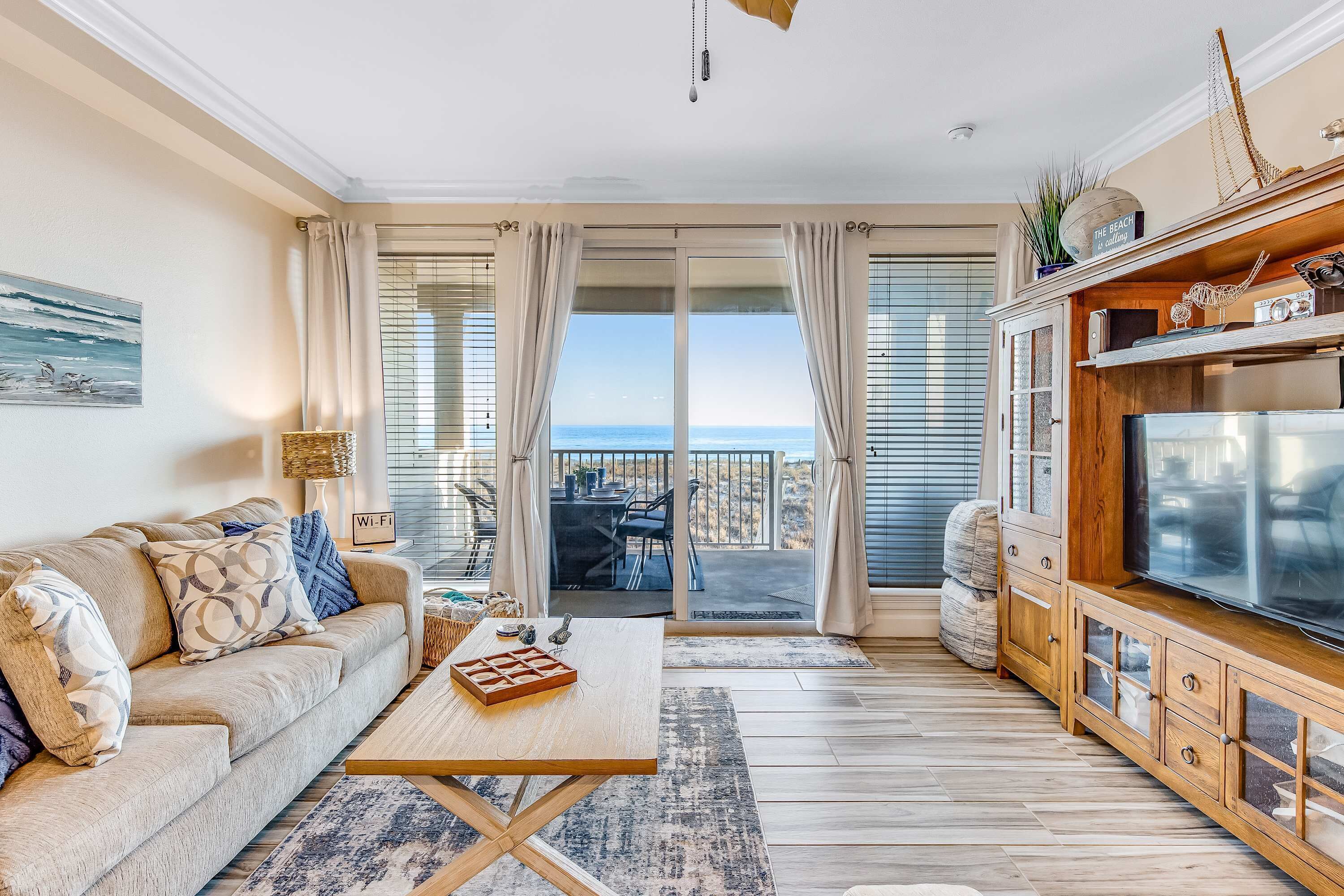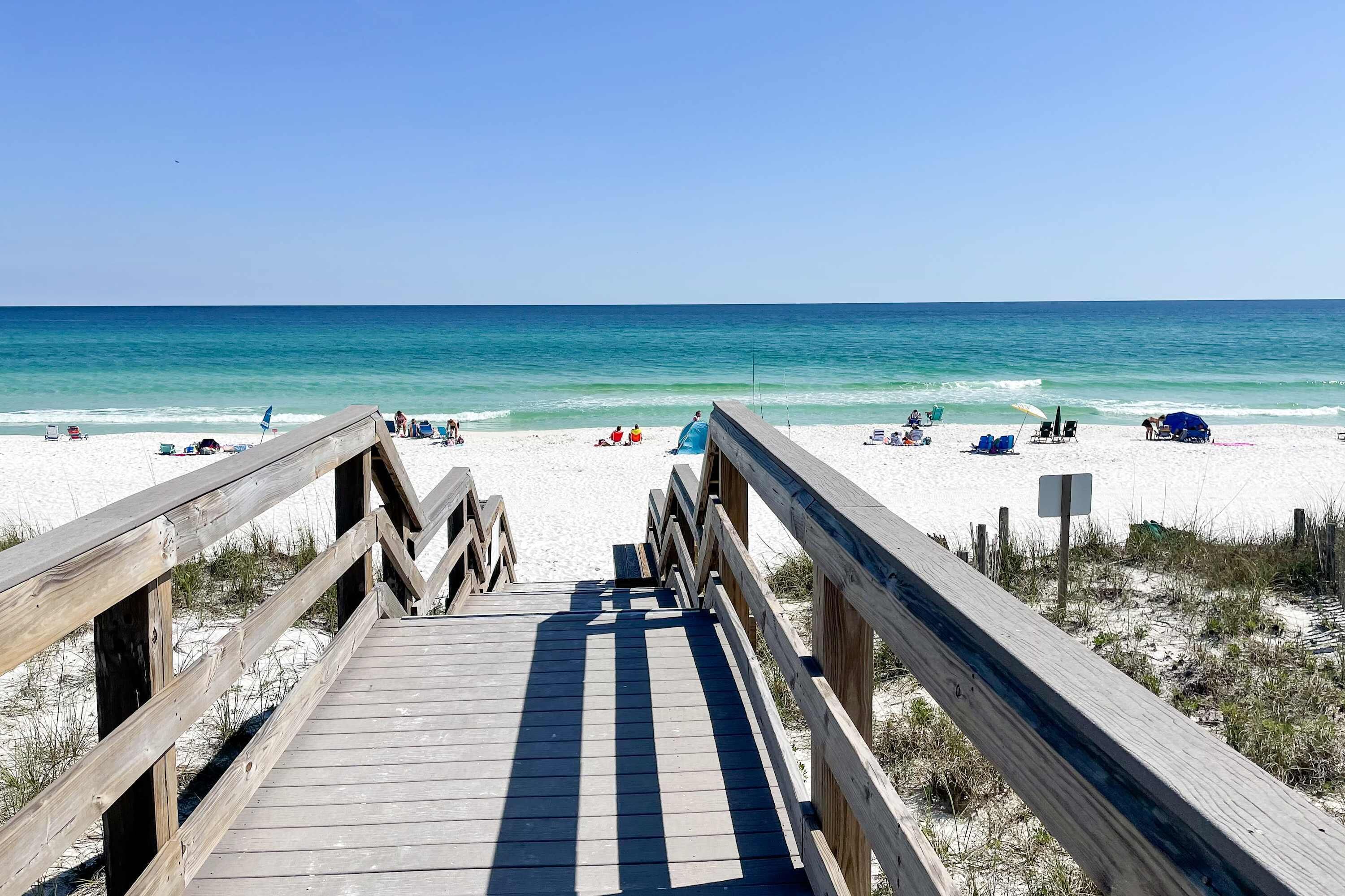 In a tranquil beachfront setting, Beach View Condo offers the perfect blend of comfort and relaxation. Unwind on your private patio with pool access, or simply step onto the white sand of the gulf. With 1088 sq feet of living space and amenities like Wi-Fi, a washer/dryer, and full kitchen appliances this condo is ideal for your seaside getaway.