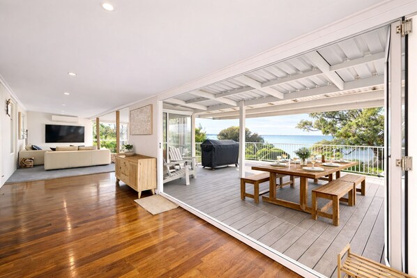 This spacious waterfront home is designed for relaxed coastal living, ideal for families and groups of up to 10 guests. With generous indoor–outdoor spaces, multiple living areas, and room for everyone to spread out, it’s perfect for shared stays without feeling crowded.