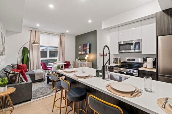 Fridge, microwave, oven, stovetop - Stylish 1BR | DT Philly by Art Museum & Key Sights (Philadelphia)