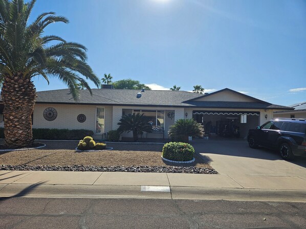 Your Sun City West adventure begins at this 3-bedroom house. Each bedroom features a comfortable queen bed, perfect for a restful night. The house includes two bathrooms, both equipped with showers and hair dryers for convenience. Guests enjoy a welcoming atmosphere with heating and air conditioning to keep the temperature just right. Whether you’re relaxing indoors or getting ready for a day out, this amazing home offers everything you need. Our place will help you feel at home while you're traveling in Sun City West.