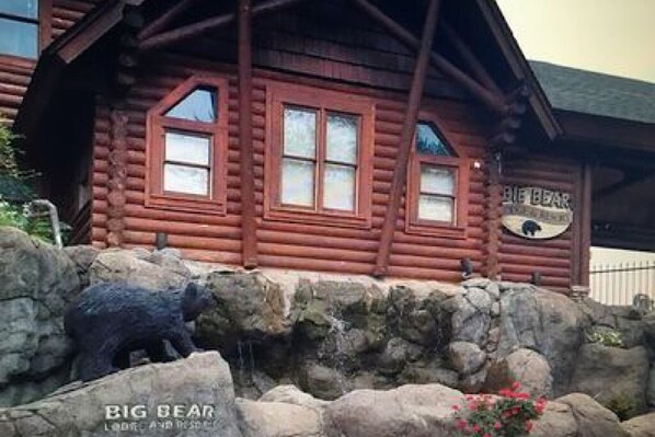 OUR HIDE hikingway cabin invites you to unwind in Big Bear Lodge and Resort. With the resort's indoor and outdoor pools, game room, exercise room, and conference room at your fingertips, this 3-level duplex style cabin offers a private retreat near Wears Valley. Enjoy amenities like FREE WiFi & Netflix on both levels.