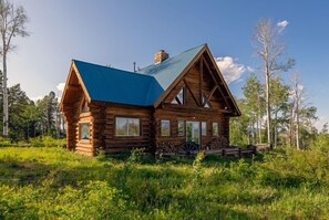 Authentic Colorado Log Cabin Retreat- 3bed | 2bath provides amenities, such as a firepit and a garden.