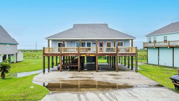 This home provided everything you need and same price for two hotels for the weekend. Lots of room, quiet area, 2 minute walk to the beach, and comfy comfy beds. However you need to take your own trash bags, toilet paper and paper towels. Beds have protector padding on them but no sheets nor towels but you can have them delivered for a fee....cheaper than other rental houses. BBQ grill was large enough to grill meat for 18 people and still have room. Livingroom was very large with dining room and kitchen. Jetted tub in master bathroom. 1st bedroom has two queen beds, 2nd has two sets of bunk beds, 3rd has queen bed. Two couches that are very very large for more to sleep. Two chairs that recline back as well. Wifi box needs to be turned on upon arrival. Directv is provided. Hammocks do not work but was not a bummer. Front deck is large with plenty of seating. Two picnic tables one upstairs one downstairs. Not close to neighbors to where you can touch but there are neighbors. Just over all amazing and will be our go to house from now on.