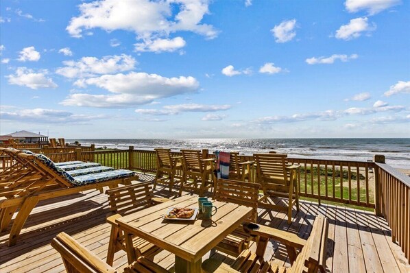 Being directly beachfront, you have immediate access to the sand. This property is perfectly situated for enjoying all the Bolivar Peninsula has to offer and is a top choice for Port Bolivar Vacation Rentals. For even larger gatherings, "Mimosa Beach" can be rented together with its sister properties, Jolly Roger and Sangria Sunset.