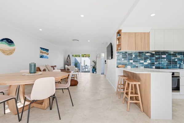 Enjoy a relaxed coastal stay just moments from the beach and local cafes. This stylishly decorated home features a renovated kitchen, open-plan living and dining, and large smart TVs for easy downtime. Drift off to the sound of the waves and unwind after days spent exploring Port Macquarie's beaches, coastal walks, and vibrant cafe scene. Only 200 metres from Shelly Beach, as well as the renowned Port Macquarie Coastal Walk, and 800 metres to restaurants and cafes.