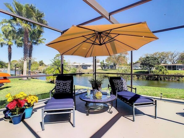 Come enjoy your perfect hideaway in conveniently located Port Richey. Relax in your private heated pool, or go fishing and kayaking right in your back yard. Centrally located it is a short distance to the activities of Tampa and Clearwater Beach to the south and Crystal River to the North. The house has two private bedrooms with queen beds, plus a third bedroom room with two twins and full laundry. All rooms have TV’s. Enjoy the BBQ, gas fire pit, two kayaks and beach accessories are provided.