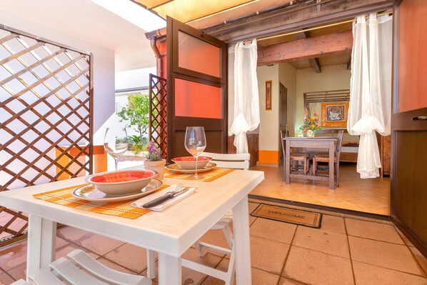The studio "Lo Scrigno" is located in Porto Torres and is perfect for an unforgettable holiday with your loved ones. This property consists of a living/sleeping area with a queen-size bed and a well-equipped kitchen, and 1 bathroom and can therefore accommodate 2 people. Additional amenities include high-speed Wi-Fi (suitable for video calls), air conditioning as well as a washing machine.