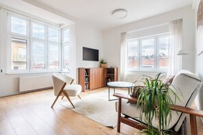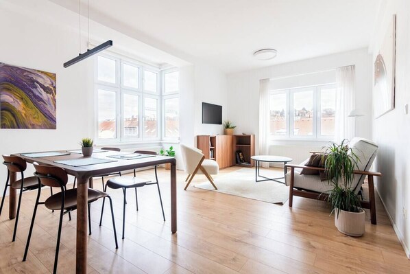 Located in Smichov, Prague 5, this fully furnished flat offers modern comfort with a view of villa houses on the hill. With a fully equipped kitchen and bathroom with washing machine, you can unwind after exploring nearby parks or working from home.